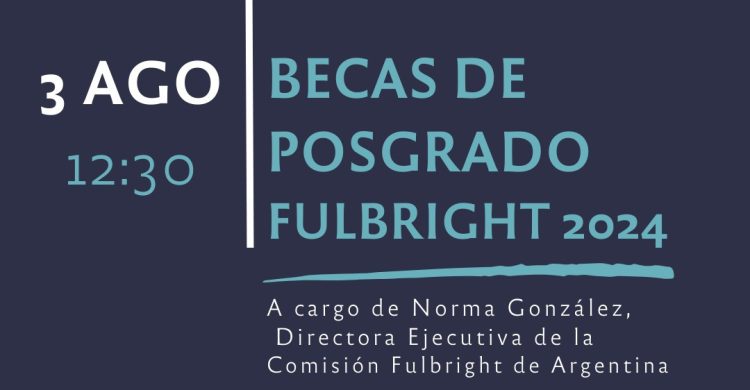 El jueves 3 de agosto a las 12:30 hs., se llevará a cabo la charla de presentación de las Becas Fulbright Posgrado a cargo de Norma González, Directora Ejecutiva de la Comisión Fulbright Argentina