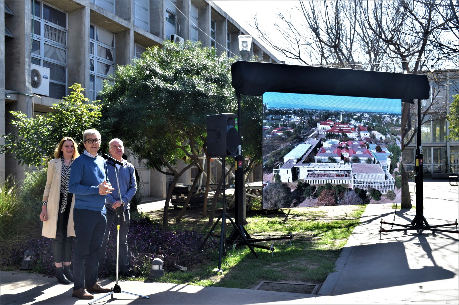 Participaron de la inauguración el rector de la UNC Jhon Boretto, la decana de la facultad y vicerrectora Mariela Marchisio, el vicedecano Guillermo Olguín, acompañados por el equipo de gestión de la FAUD.