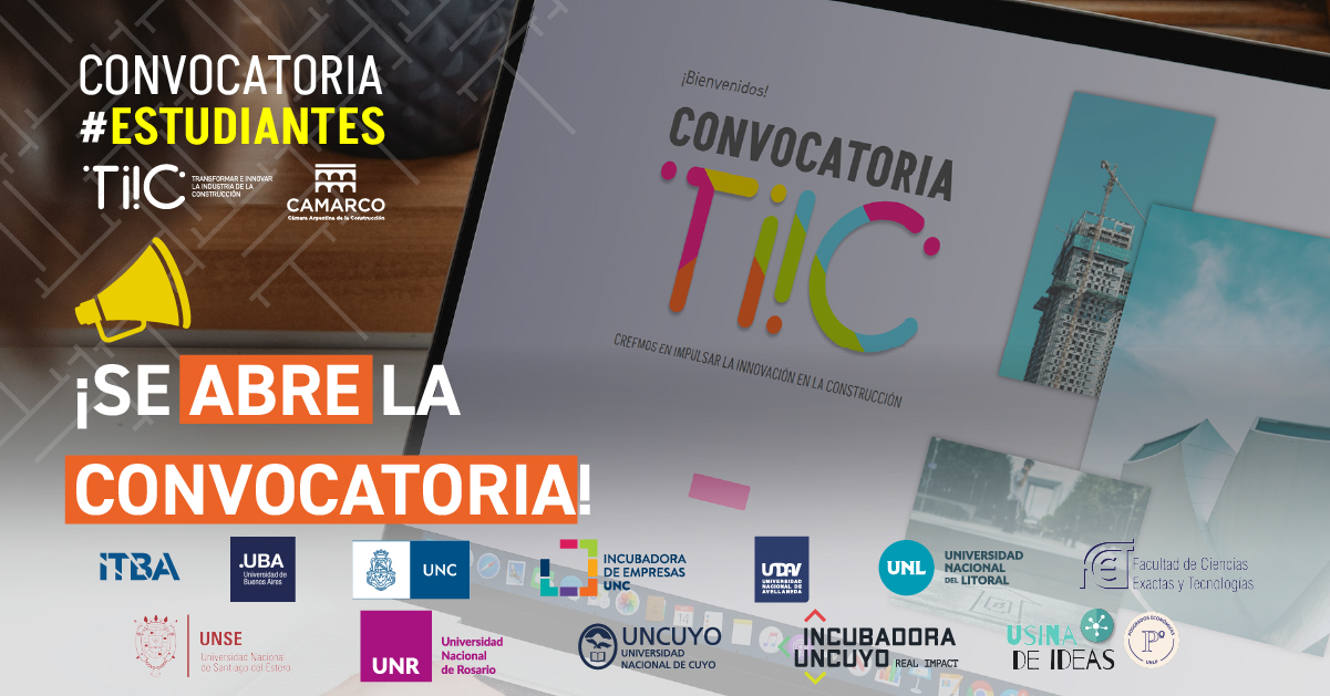 ▪ La Cámara Argentina de la Construcción, a través de su espacio TIIC – Transformar e Innovar la Industria de la Construcción - anuncia el lanzamiento de la segunda edición de su llamado a emprendedores/as exclusivo para el mundo académico.