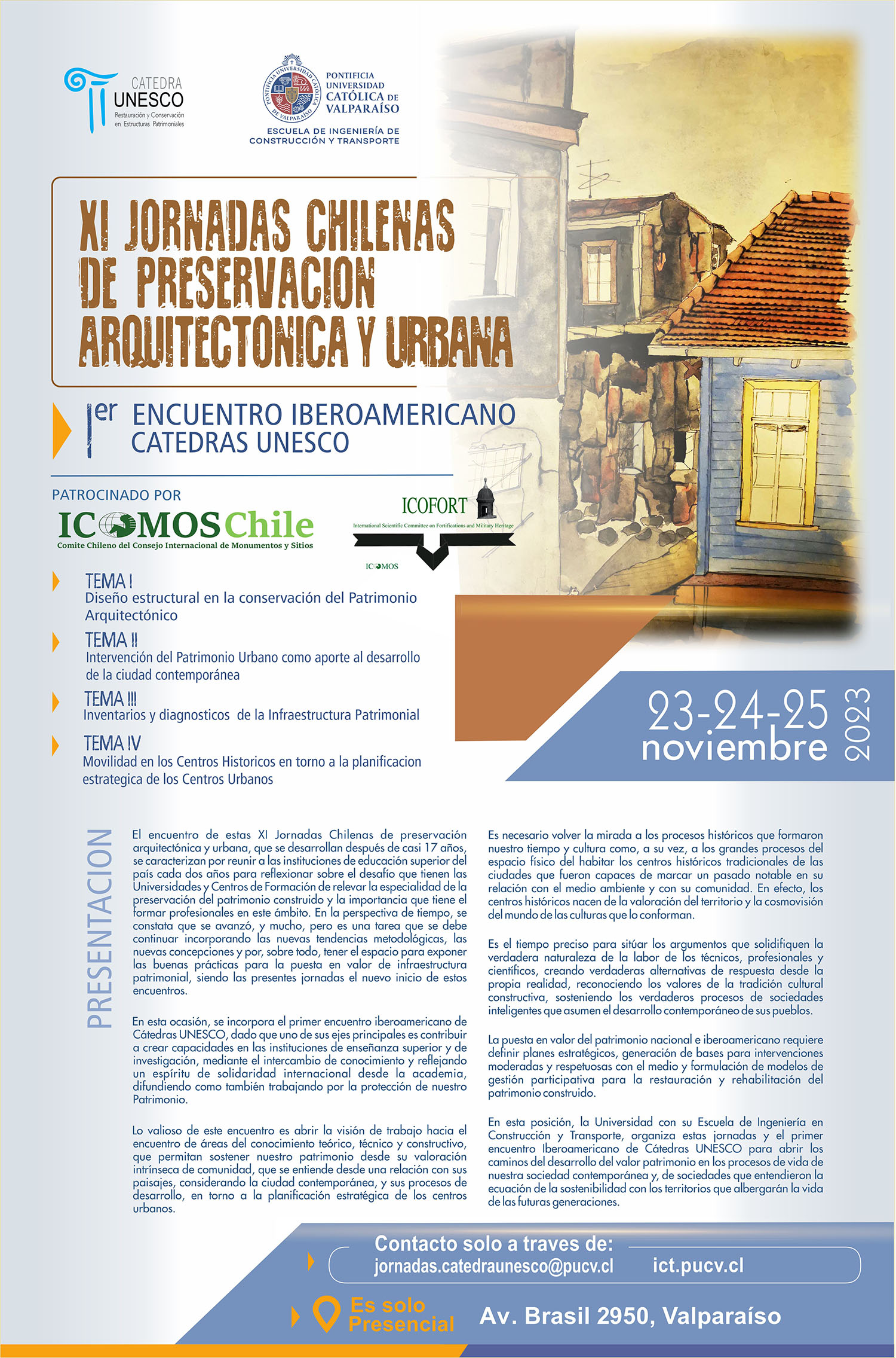 La Escuela de Ingeniería en Construcción y Transporte de la PUCV invita a participar al evento de las “XI JORNADAS CHILENAS DE PRESERVACIÓN ARQUITECTÓNICA Y URBANA Y 1er Encuentro Iberoamericano de Cátedras Unesco”