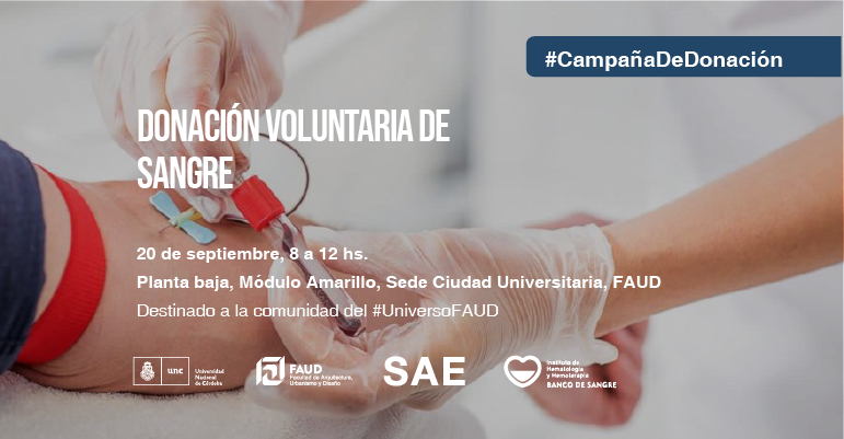 En el marco del Programa SAE Sale! y en conjunto con el Banco de Sangre del Instituto de Hematología y Hemoterapia de la UNC, invitamos a la comunidad FAUD a colaborar como donantes voluntarios/as de sangre.