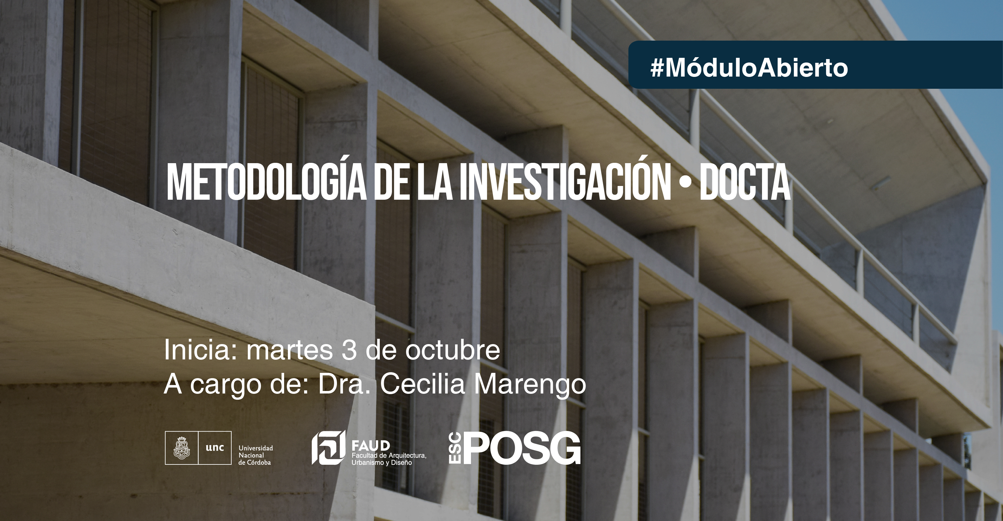 La Escuela de Posgrado informa que se encuentran disponibles las inscripciones para el módulo abierto “Metodologías de la Investigación”, del Doctorado en Arquitectura, DOCTA.
