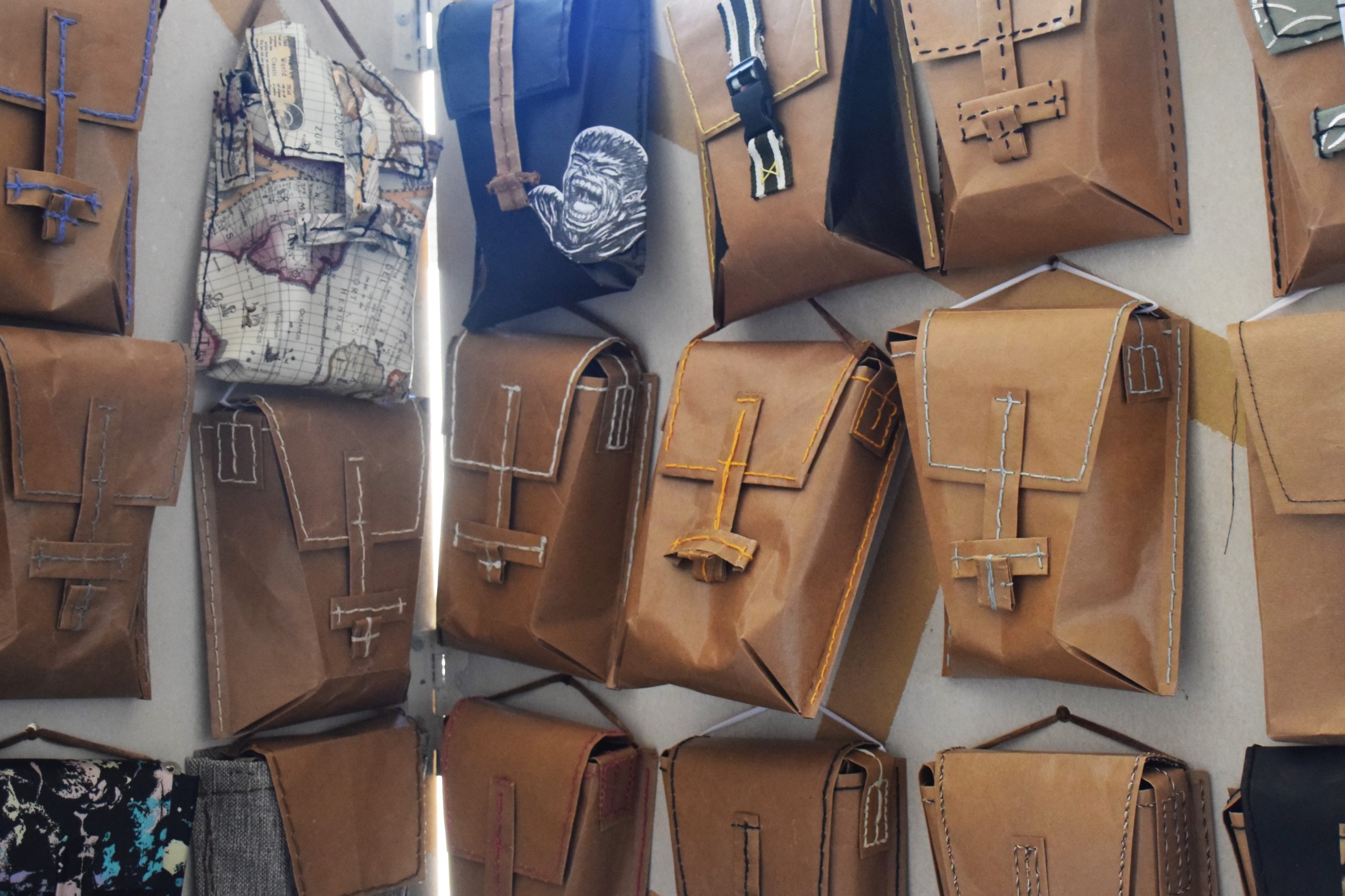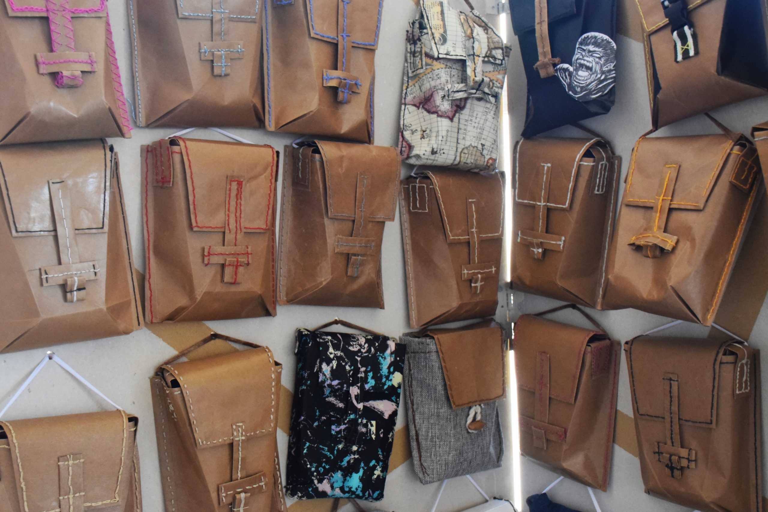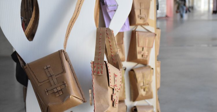 Muestra de Bandoleras Urbanas, realizadas por estudiantes de primer año, en el marco del trabajo práctico referido a materiales textiles para la asignatura Introducción a la Tecnología de la carrera de Diseño Industrial