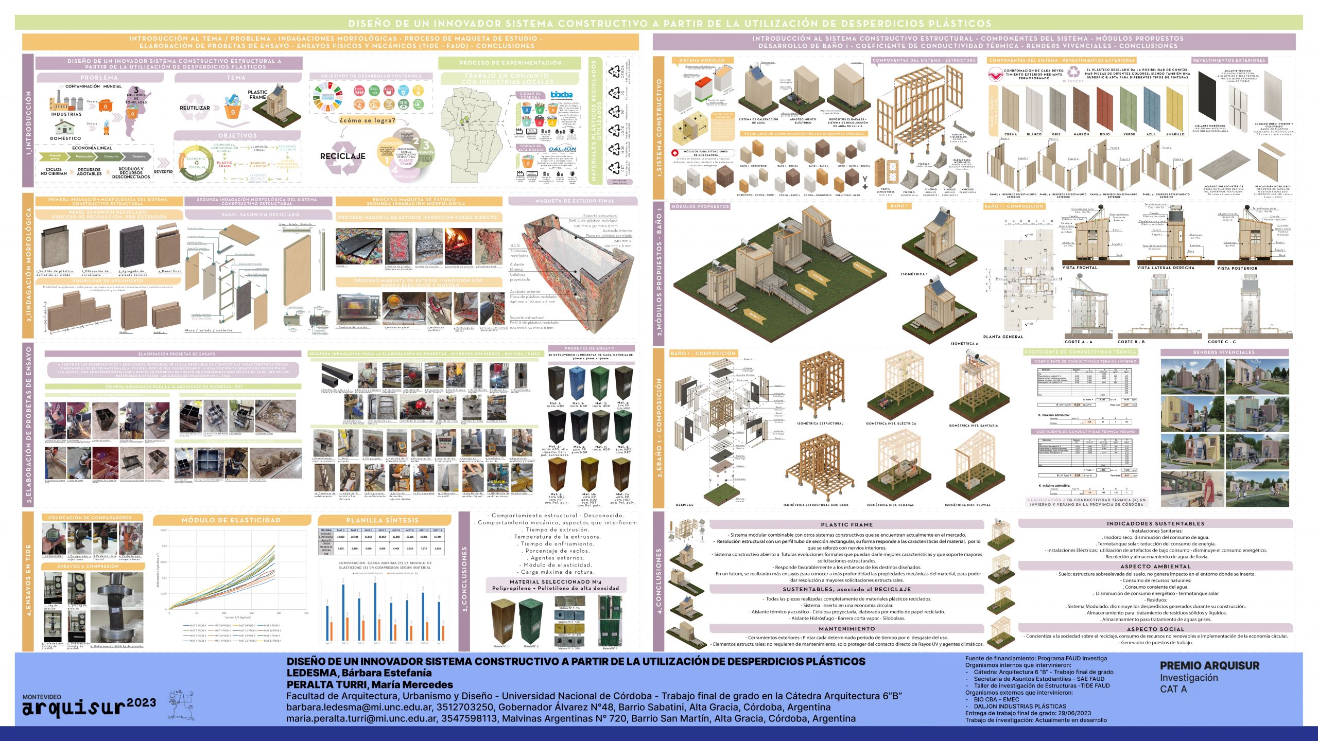 inserta. Como conclusión, la investigación demuestra que el sistema propuesto, llamado "Plastic Frame", que se basa en residuos plásticos, representa una alternativa eficaz, viable y sostenible. Este enfoque contribuye a la economía circular y la sostenibilidad en la industria de la construcción, ayudando a reducir la contaminación global.