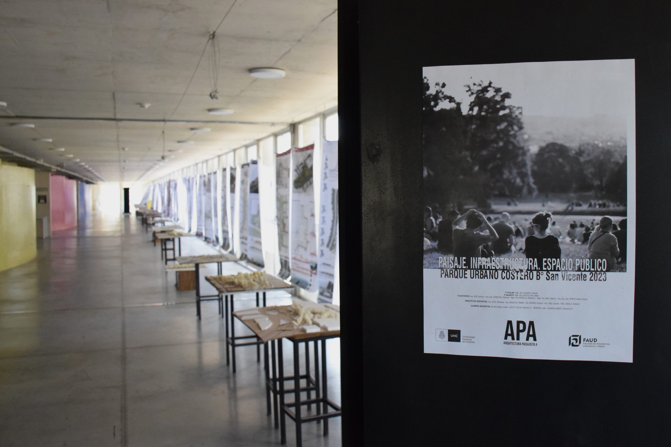 La exposición representa proyectos finales de la cátedra Arquitectura Paisajista A, carrera Arquitectura; sobre “Parque Urbano Costero en barrio San Vicente, 2023”.