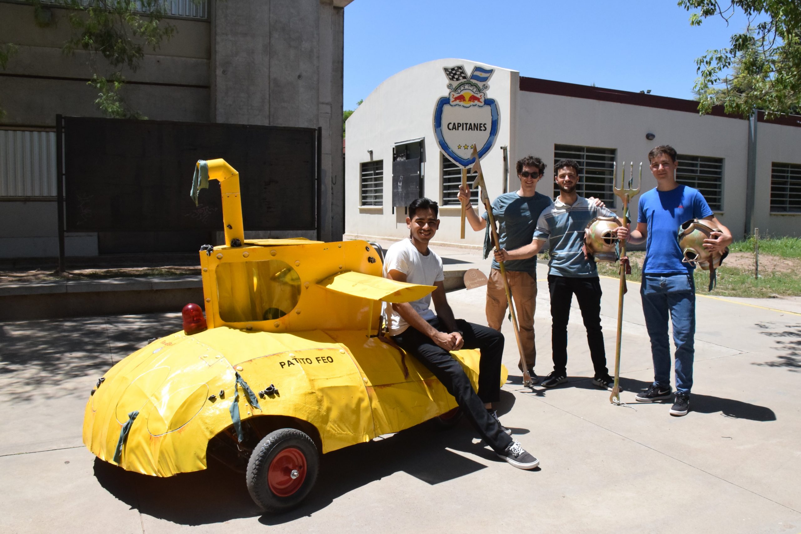 Los estudiantes Marcos Roiz, Agustín Buttaccio, Gaspar Battiston e Ivan Del Col, bajo el nombre LOS CAPITANES, trabajaron en la construcción de un carro en forma de submarino con el apoyo del taller de maquetería de la FAUD para presentarlo en la competencia que se llevó a cabo el mes pasado, en Buenos Aires.