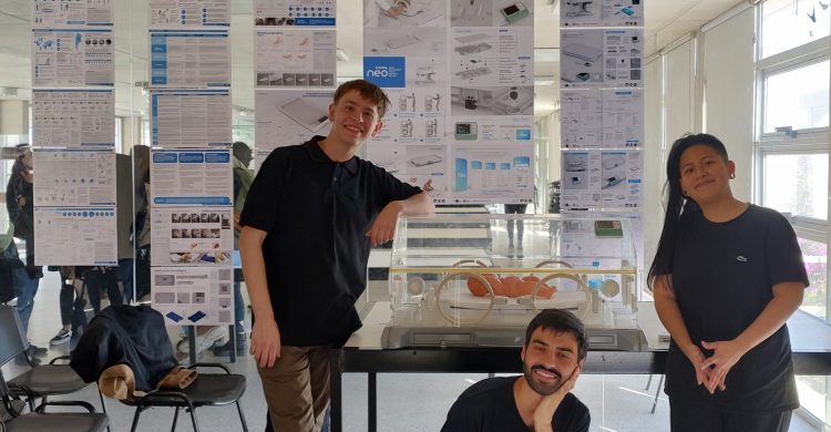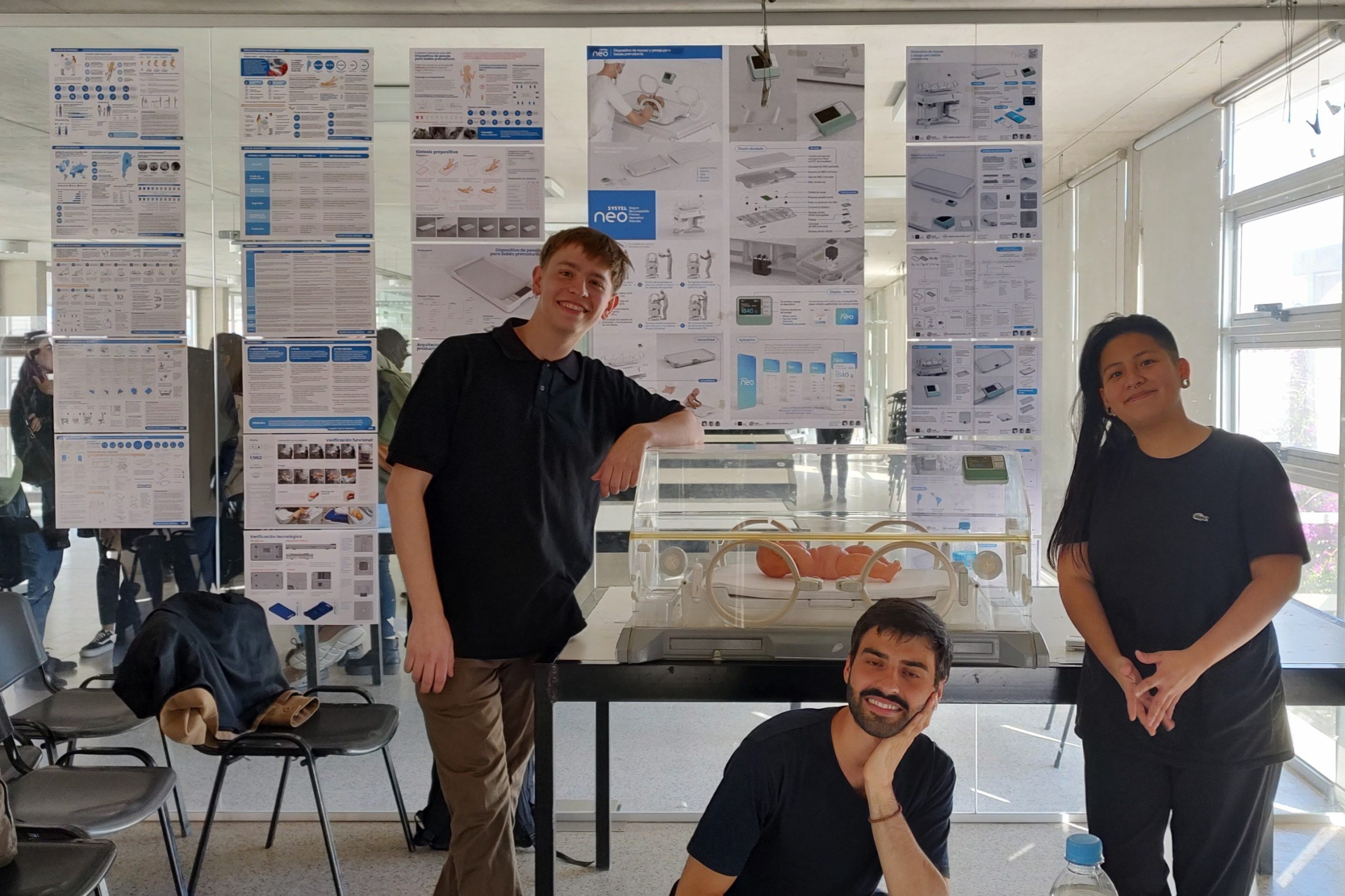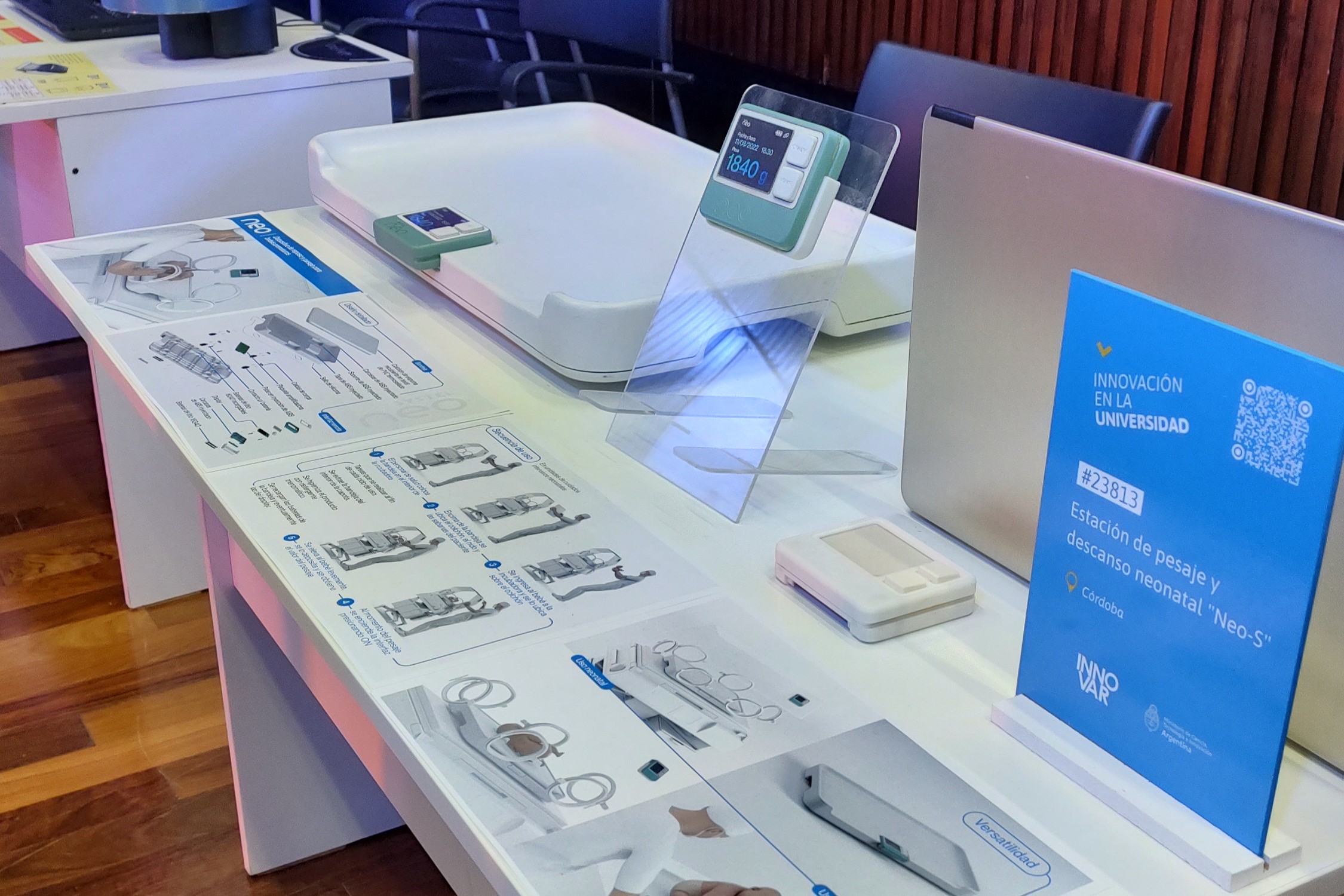 El equipo conformado por los estudiantes Matías Malvarez, Tomás Cayetano Barros y Belén Arguello obtuvieron premio en la categoría “Innovaciones en universidades” con el proyecto presentado “Estación de pesaje y descanso neonatal – Neo-S”.