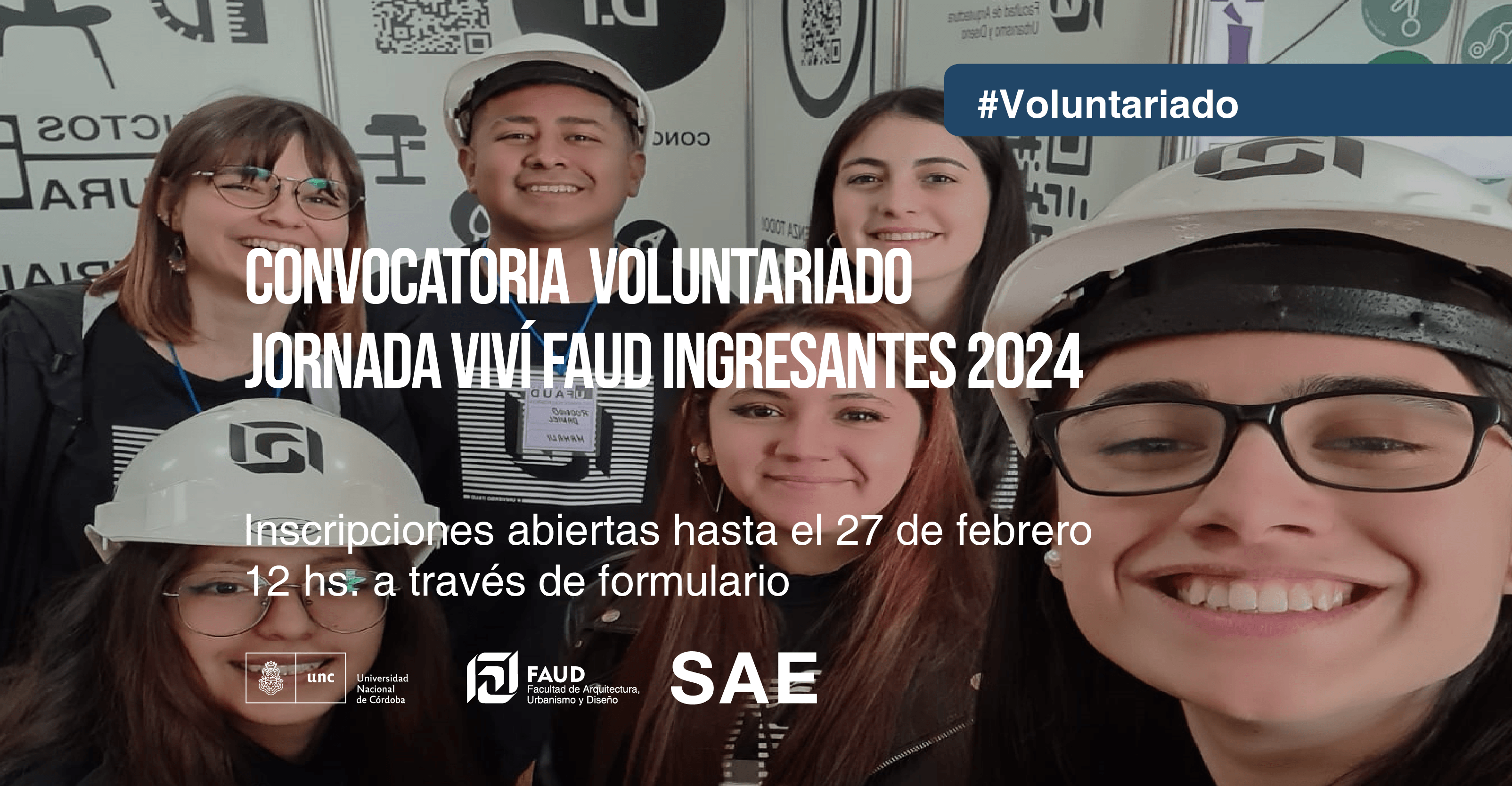 La Secretaría de Asuntos Estudiantiles invita a estudiantes de Arquitectura, Diseño Industrial y Diseño del Paisaje a colaborar como voluntarios/as en la próxima Jornada Viví FAUD, destinada a Ingresantes 2024 -ediciones Primavera y Verano- en FAUD Sede Ciudad Universitaria.