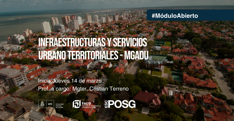 La Escuela de Posgrado informa que se encuentran disponibles las inscripciones para el módulo abierto “Infraestructuras, y servicios urbano-territoriales” de la Maestría en Gestión Ambiental del Desarrollo Urbano - MGADU.