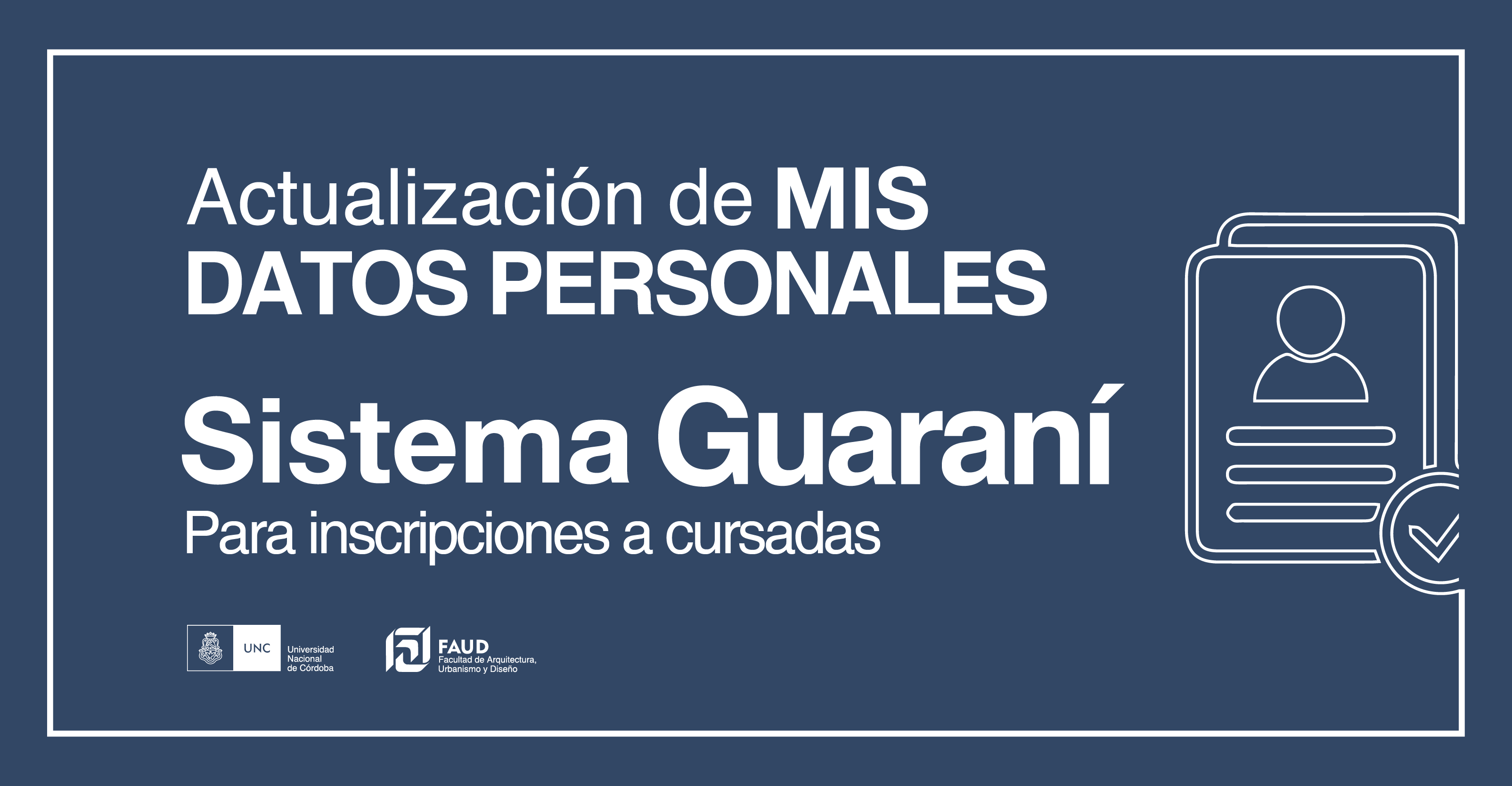 Es muy importante que, previo a realizar las inscripciones a cursado en Guaraní y para evitar inconvenientes al momento de hacer el trámite, actualicen sus datos en el sistema.
