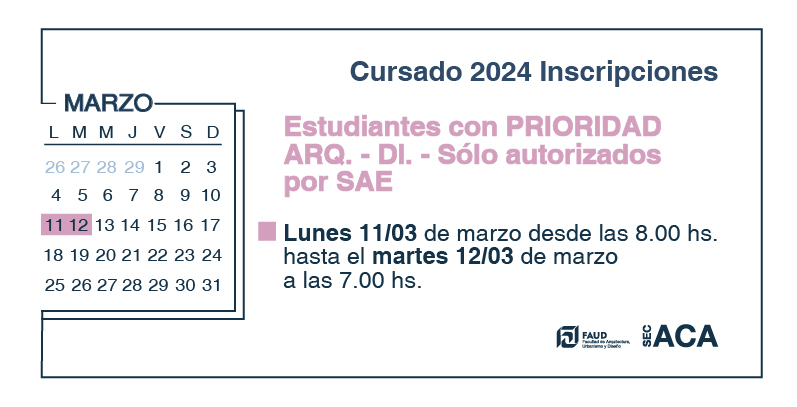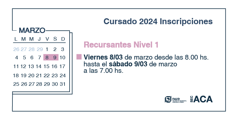 Secretaría Académica informa los días y horarios de Inscripción a Cursadas 2024.