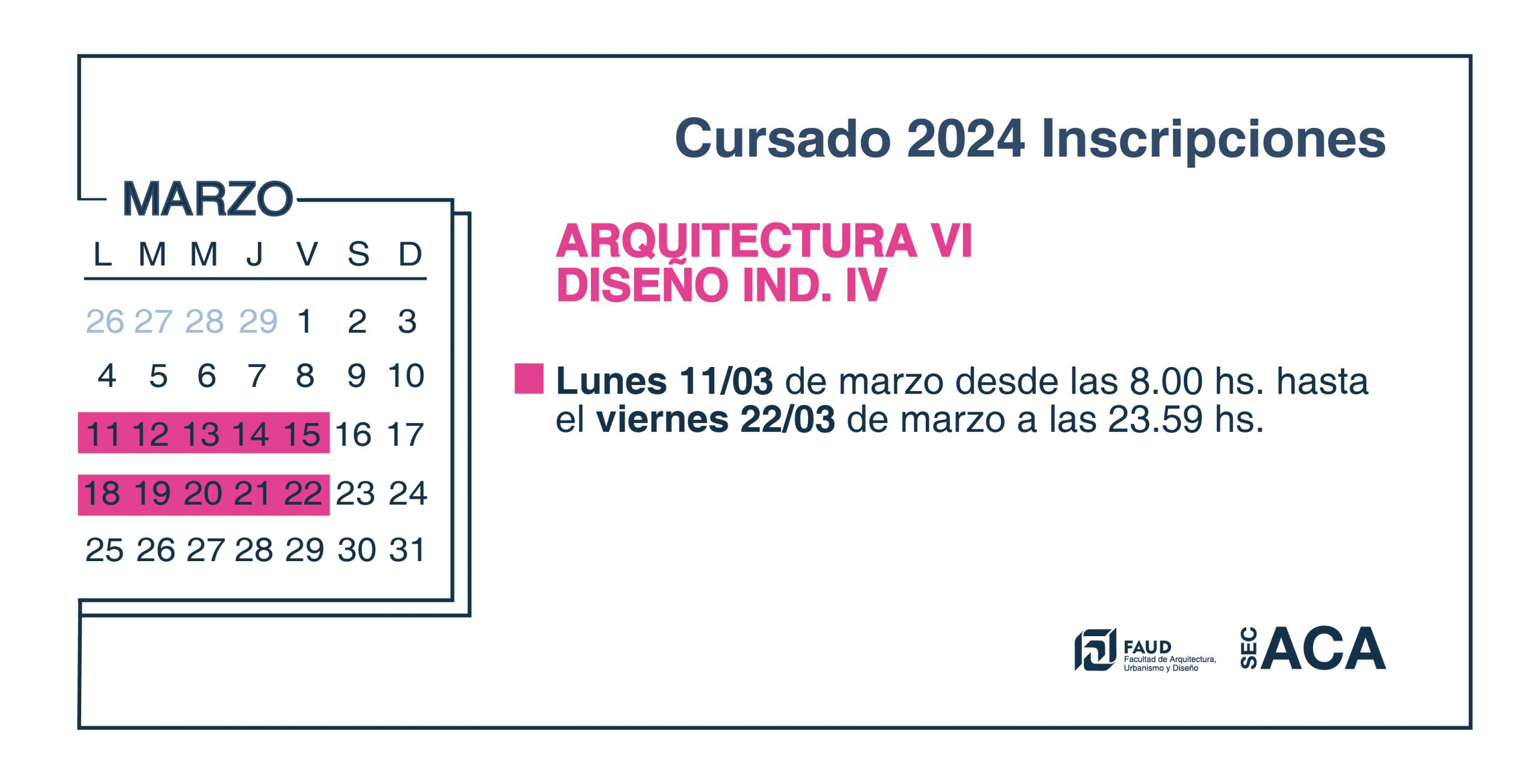INSCRIPCIONES ARQUITECTURA VI - Nivel VI / DISEÑO INDUSTRIAL IV - Nivel V.