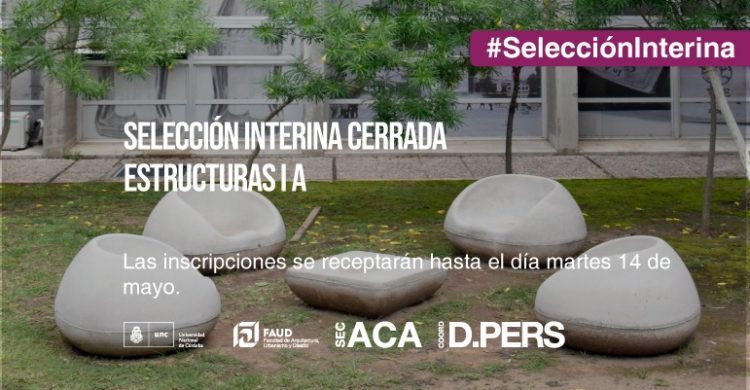 Secretaría Académica y la Coordinación de Desarrollo del Personal informan que se encuentra disponible la convocatoria a selección interina cerrada para cubrir un cargo de Prof. Adjunto D. Semiexclusiva para la cátedra de ESTRUCTURAS I-A.