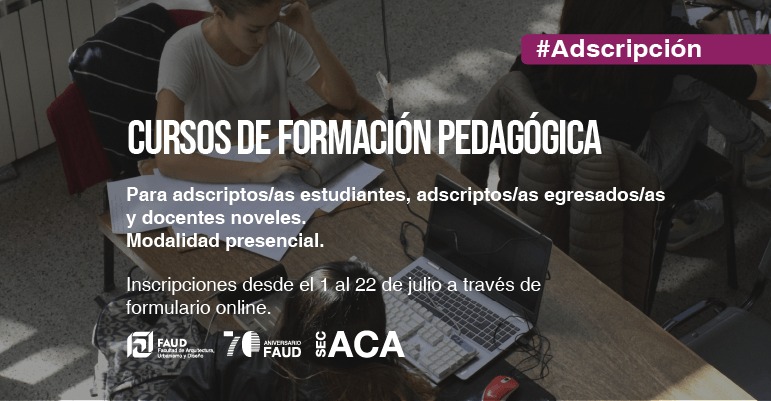 La Secretaría Académica y Asesoría Pedagógica informan que se abrirán las inscripciones para los Cursos de Formación Pedagógica destinados a adscriptos/as estudiantes, adscriptos egresados y docentes noveles.