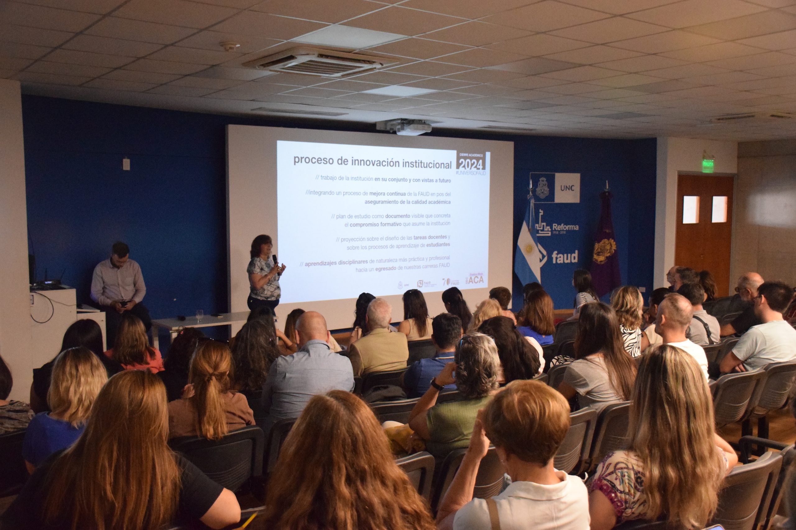 En esta ocasión, el evento contó con la presencia de la decana y vicerrectora de la UNC, Arq. Mariela Marchisio; el vicedecano de la FAUD, Arq. Guillermo Olguín; autoridades del equipo de gestión; y docentes de la comunidad FAUD.
