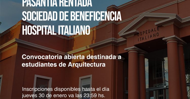 Consultas: sae.pasantias@faud.unc.edu.ar con asunto: Convocatoria – Sociedad de Beneficencia Hospital Italiano