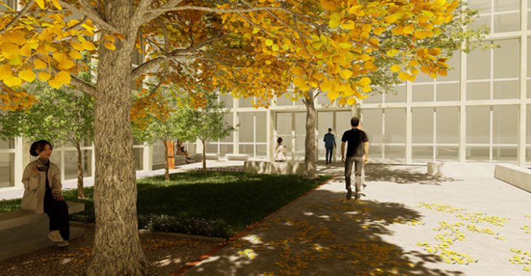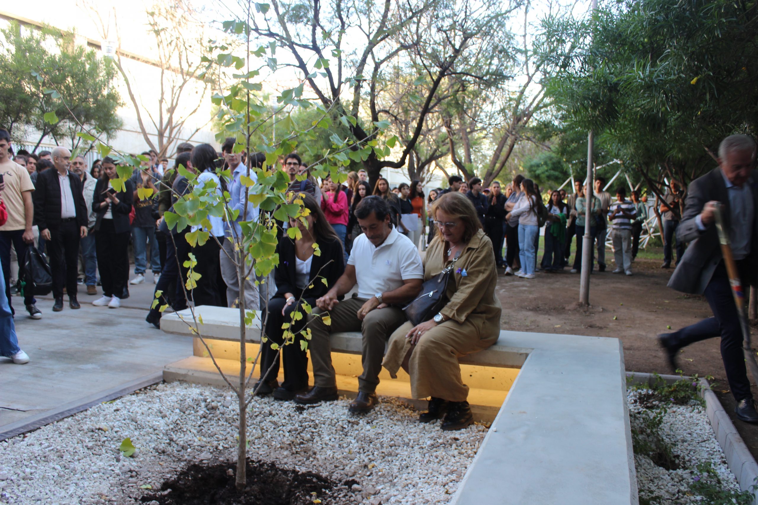 Este espacio íntimo y contenido se configura como un lugar de memoria personal. Su planta, con bancos dispuestos en forma de “C”, refuerza la idea de refugio y encuentro. Destaca el Árbol de la Vida – Ginkgo biloba, símbolo de resistencia y renovación, que aporta un sentido de continuidad y esperanza.
