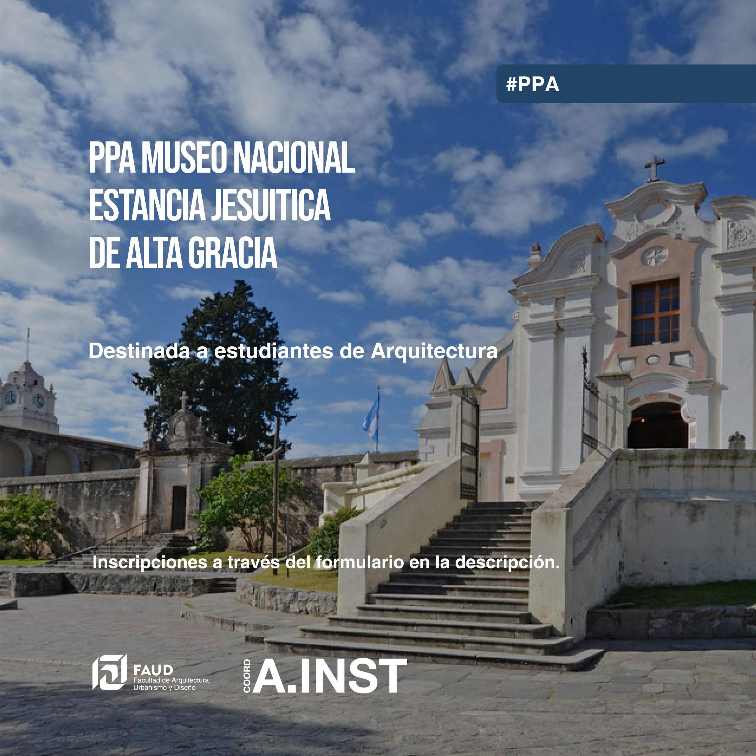 La Coordinación de Asuntos Institucionales informa que se encuentran disponibles las inscripciones para las Prácticas Profesionales Asistidas por Convenio. En esta oportunidad se abre la convocatoria para realizar la práctica en el Museo Nacional Estancia Jesuítica de Alta Gracia – Casa del Virrey Liniers.