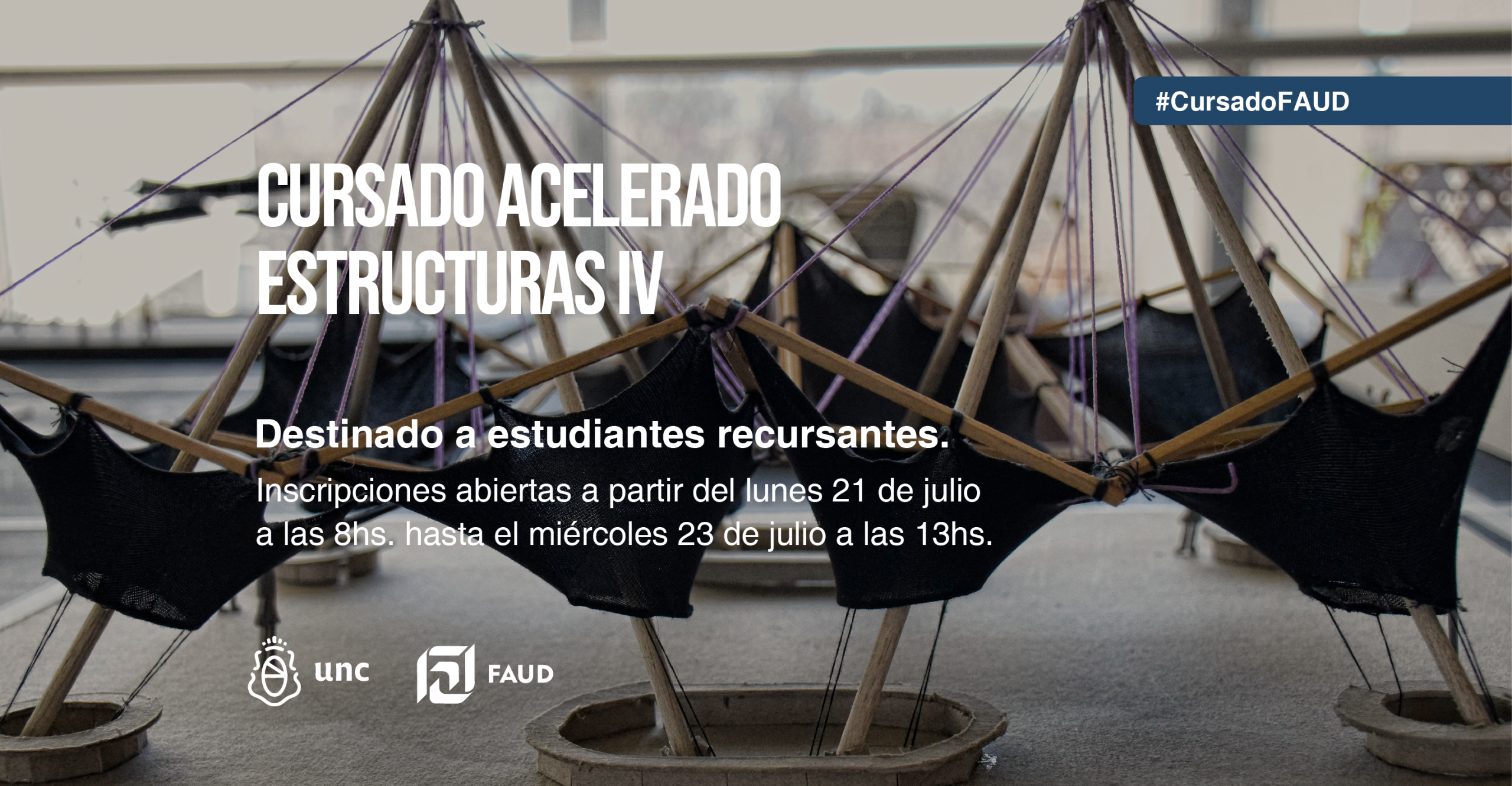 La Secretaría Académica informa que se encuentran habilitadas las inscripciones al Cursado Acelerado de Estructuras IV desde el lunes 21 de julio a las 8:00 h hasta el miércoles 23 de julio a las 13:00 h, a través del Sistema Guaraní.