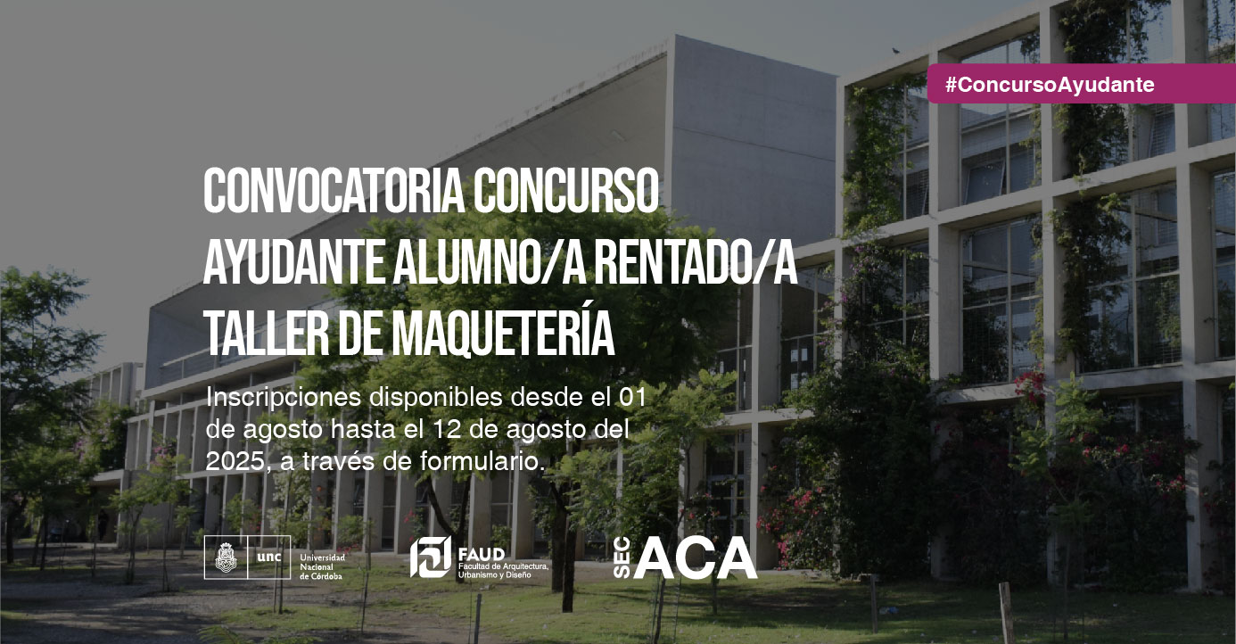 Secretaría Académica informa la apertura a inscripciones para cubrir dos cargos de Ayudante Alumno/a para el TALLER DE MAQUETERÍA de la carrera de Diseño Industrial.