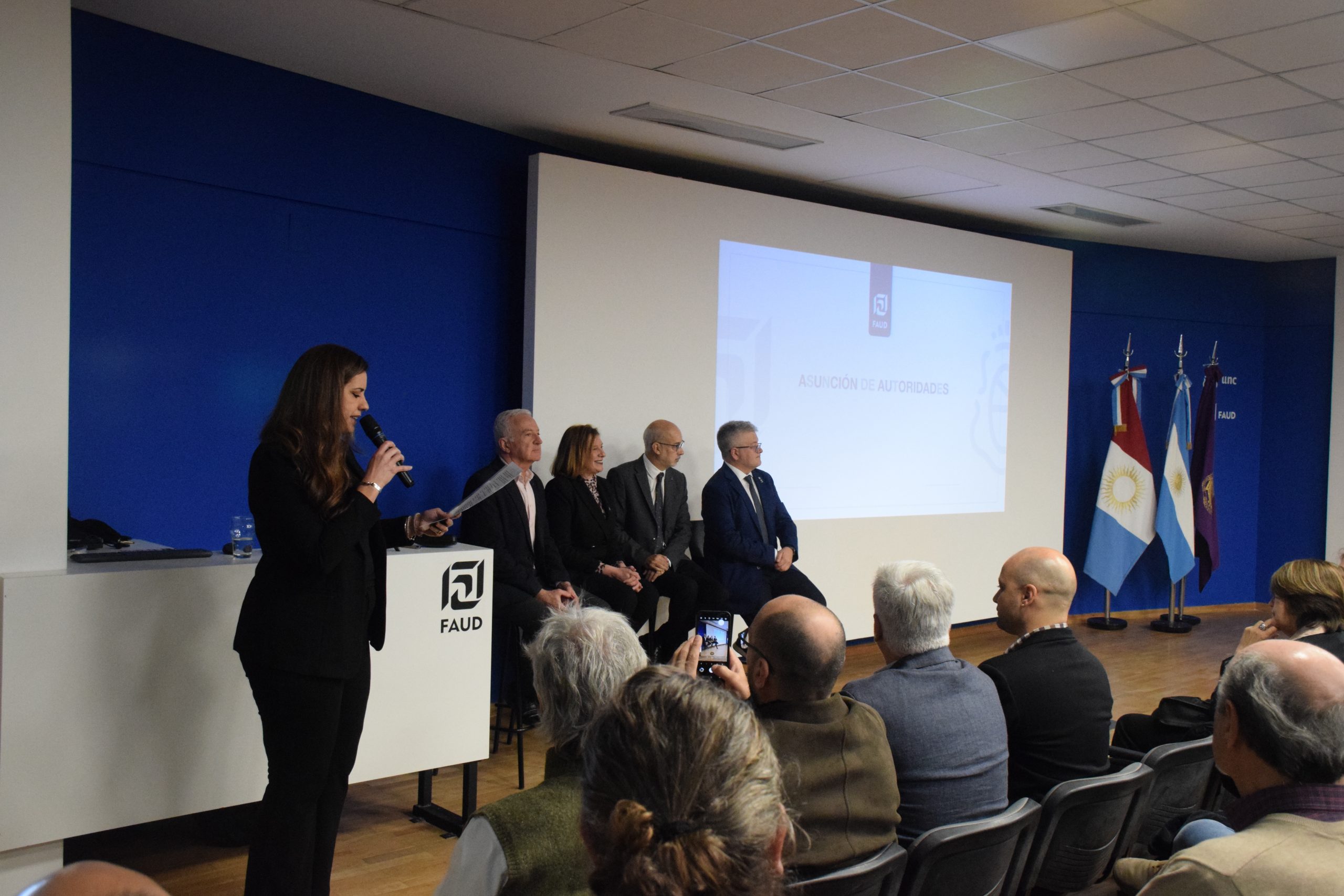 A partir de este acto, asumieron formalmente como nuevas autoridades el Arq. Arturo Maristany como decano y el Diseñador Industrial Fernando Valdez como vicedecano de la FAUD. Ambos dirigieron unas palabras a la comunidad, reafirmando el compromiso con una gestión participativa, con empatía, abierta al diálogo y orientada a la excelencia académica y la defensa de la universidad pública.