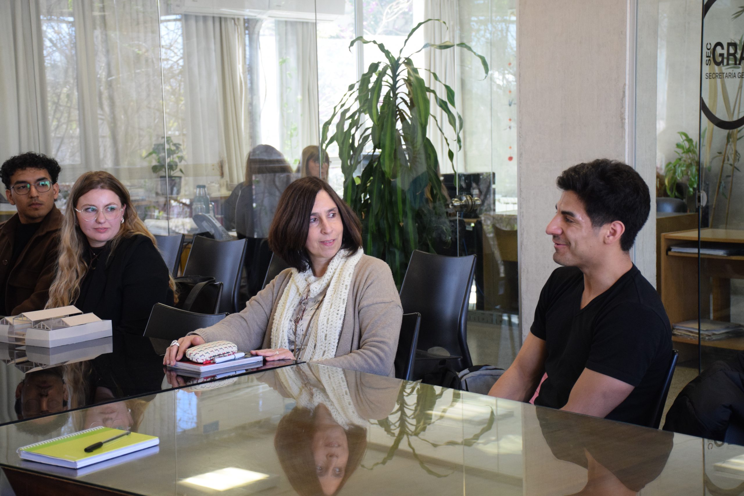 También estuvieron presentes, en representación de la FAUD, la profesora titular, Mónica Martínez, la Coordinadora de Inserción Socio-Productiva, Tristana Barseghian y el responsable de Prácticas Profesionales, Antonio Nievas. Por parte del municipio, participó Jerónimo Millá, Coordinador General de Vinculación Institucional de la Municipalidad de Villa Carlos Paz.