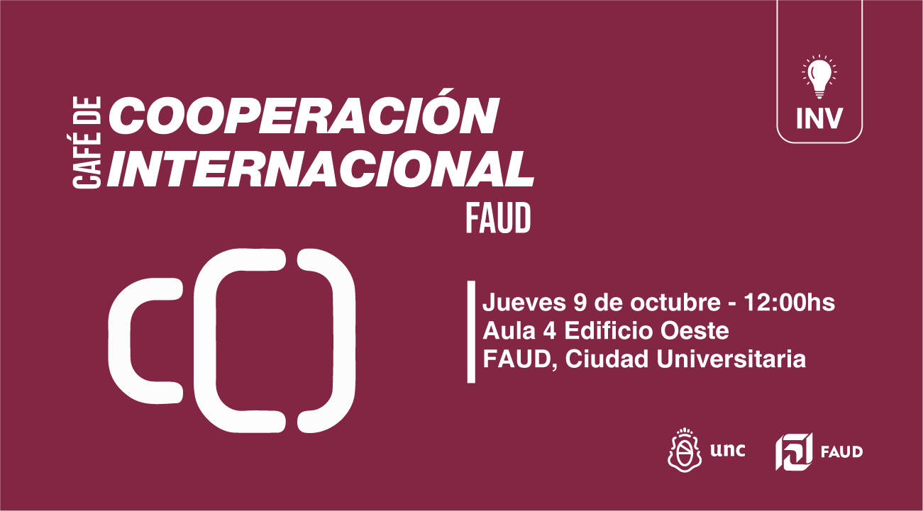 La Secretaría de Investigación, Innovación y Transferencia de la FAUD invita a participar del Café de Cooperación Internacional (CCI FAUD), un espacio destinado a fortalecer la comunidad internacional de docentes e investigadores de la Facultad y la Universidad.