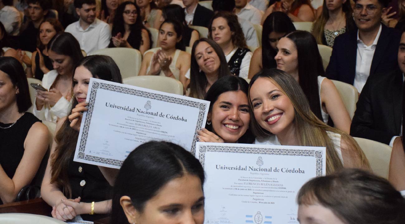 El pasado viernes 12 de diciembre, en la Sala de las Américas del Pabellón Argentina, la Facultad de Arquitectura, Urbanismo y Diseño de la Universidad Nacional de Córdoba llevó adelante la última Entrega de Diplomas FAUD 2025, un acto cargado de emoción que marcó el cierre de una etapa fundamental en la vida académica de sus egresados/as.