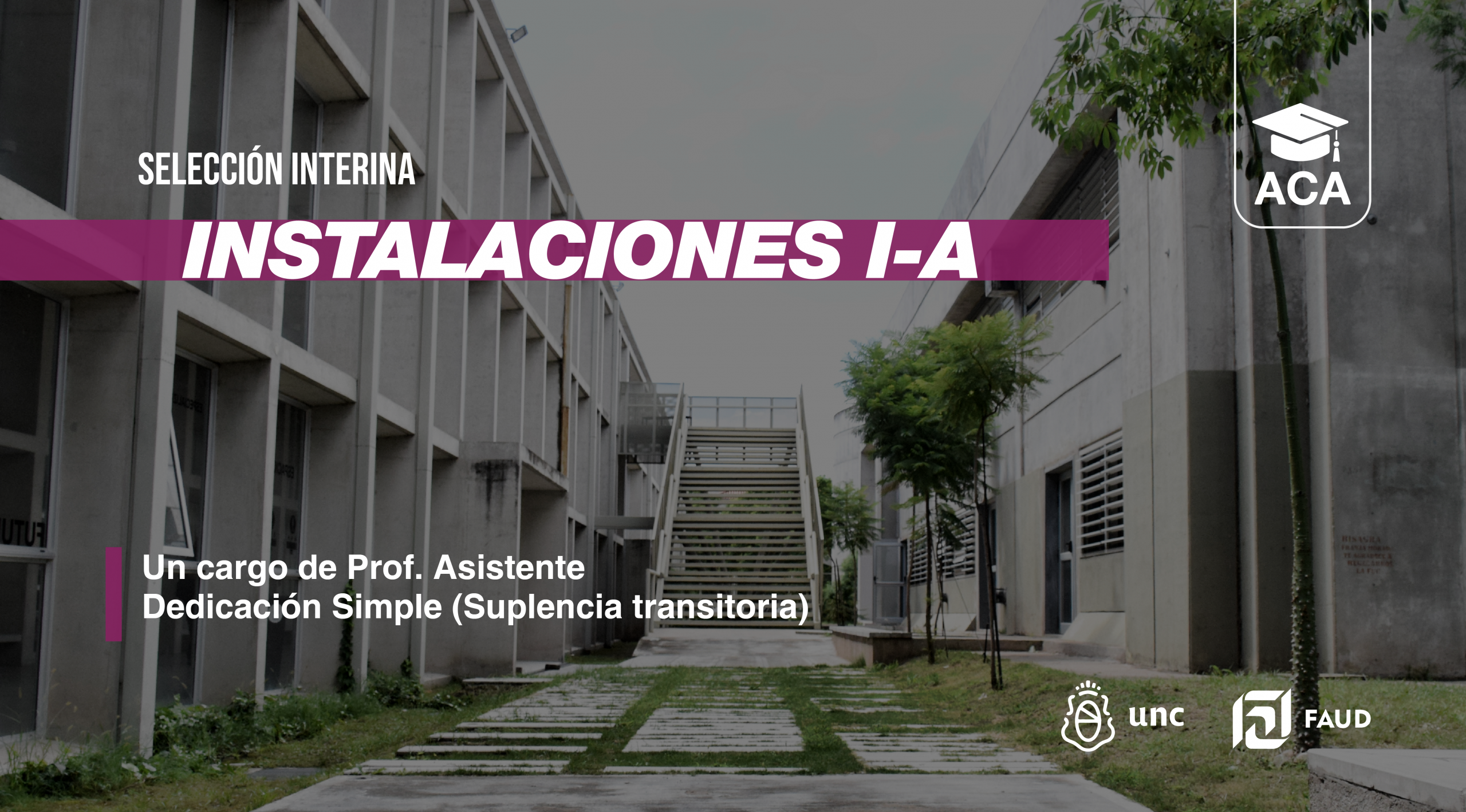 La Secretaría Académica informa que se encuentra abierta la convocatoria para la selección interina de un cargo de PROFESOR/A ASISTENTE D.Simple para la cátedra de INSTALACIONES I-A (Suplencia transitoria) de la carrera de Arquitectura.