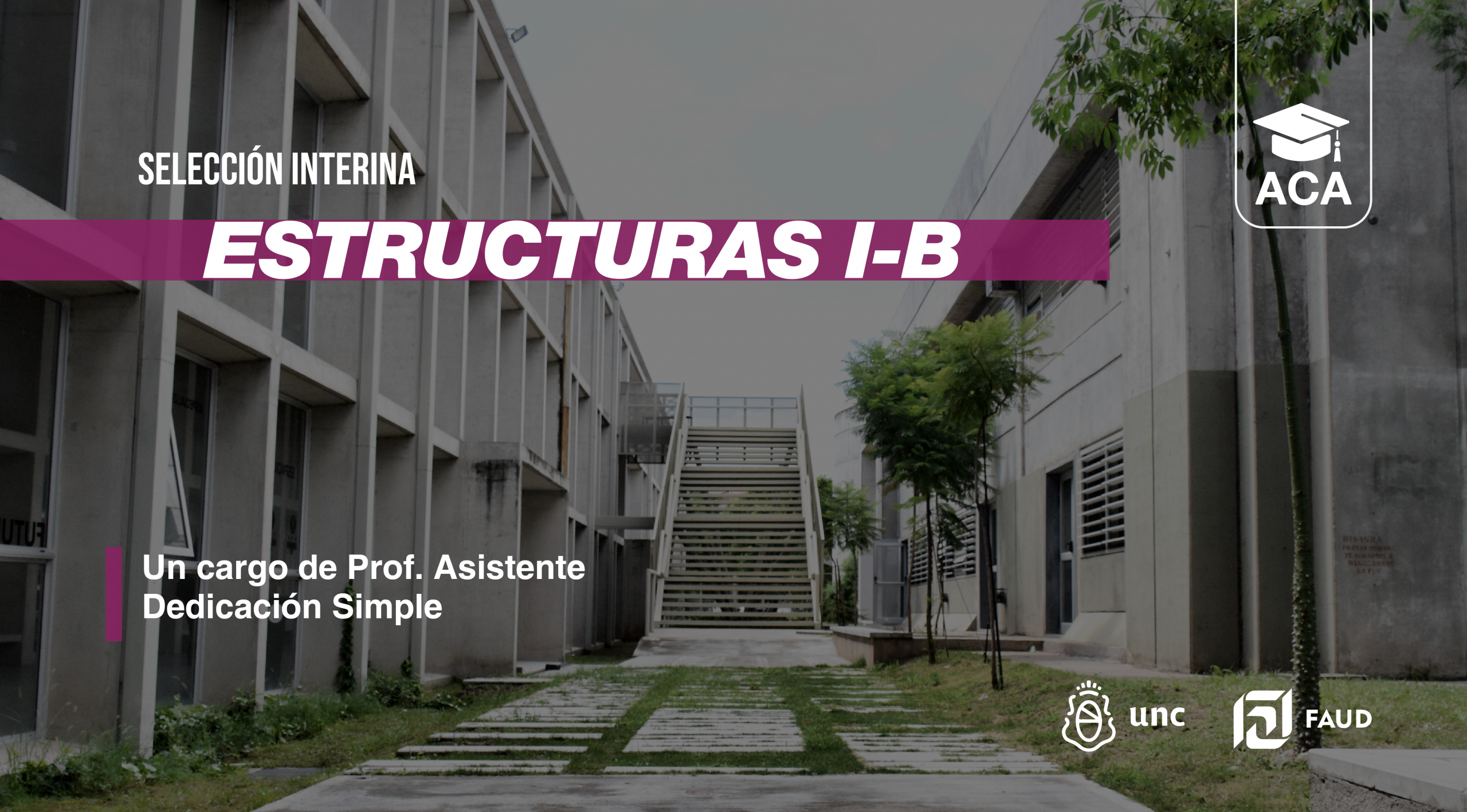La Secretaría Académica informa que se encuentra abierta la convocatoria para la selección interina de un cargo de PROFESOR/A ASISTENTE D.Simple para la cátedra de ESTRUCTURAS I-B de la carrera de Arquitectura.