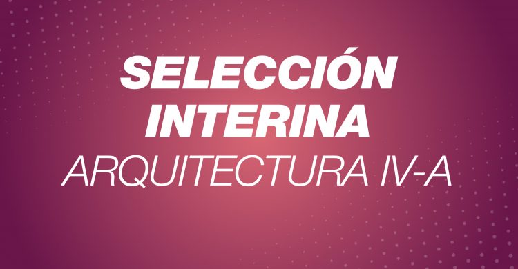 La Secretaría Académica informa que se encuentra abierta la convocatoria para la selección interina de un cargo de PROFESOR/A ASISTENTE D.Semiexclusiva (Suplencia Transitoria) para la cátedra de ARQUITECTURA IV-A de la carrera de Arquitectura.