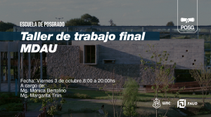El próximo viernes 3 de octubre, de 8 a 20 h, te invitamos al Taller de Presentación de Avances de Trabajos Finales, en la FAUD – Sede Centro (Av. Vélez Sársfield 264).