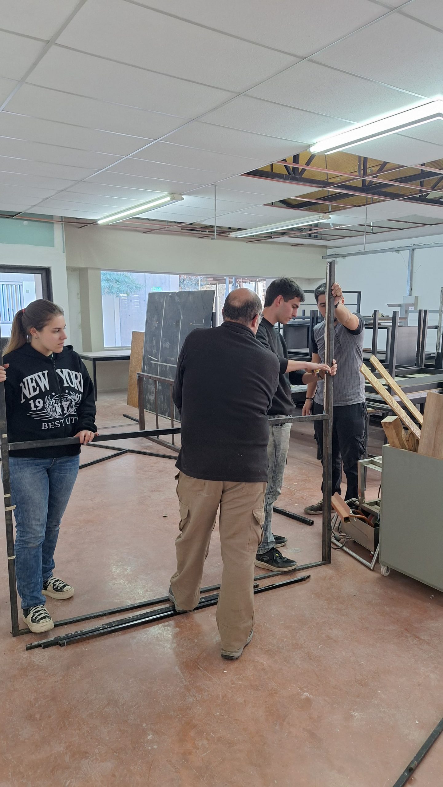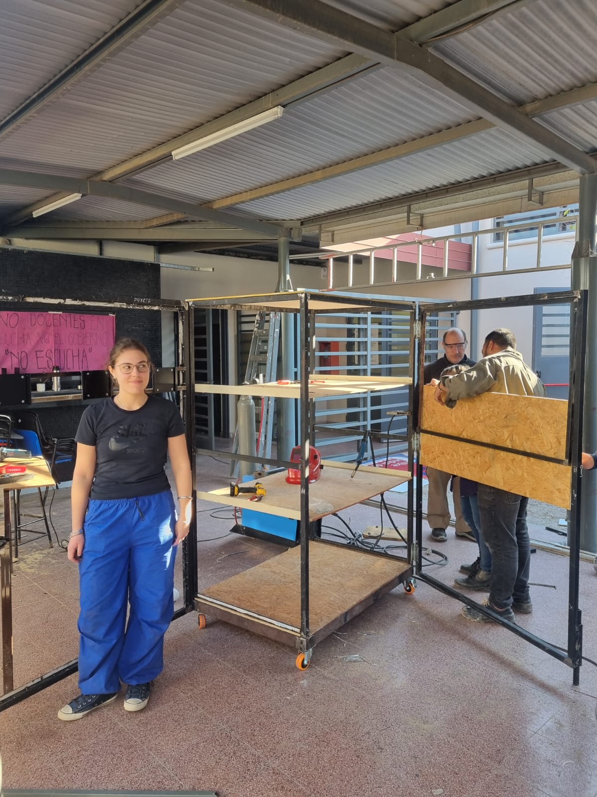 Para ello, llevamos adelante la PRÁCTICA DE DISEÑO “Materializando equipamiento de Concurso SAE desde la economía circular”, que contó con la participación activa en ajustes y ejecución de 5 estudiantes, junto con el personal no docente del Área de Mantenimiento y Servicios Generales de FAUD. Además, recibimos materiales de la Escuela de Economía Circular y Quimex, en el marco del Instituto del Color FAUD.