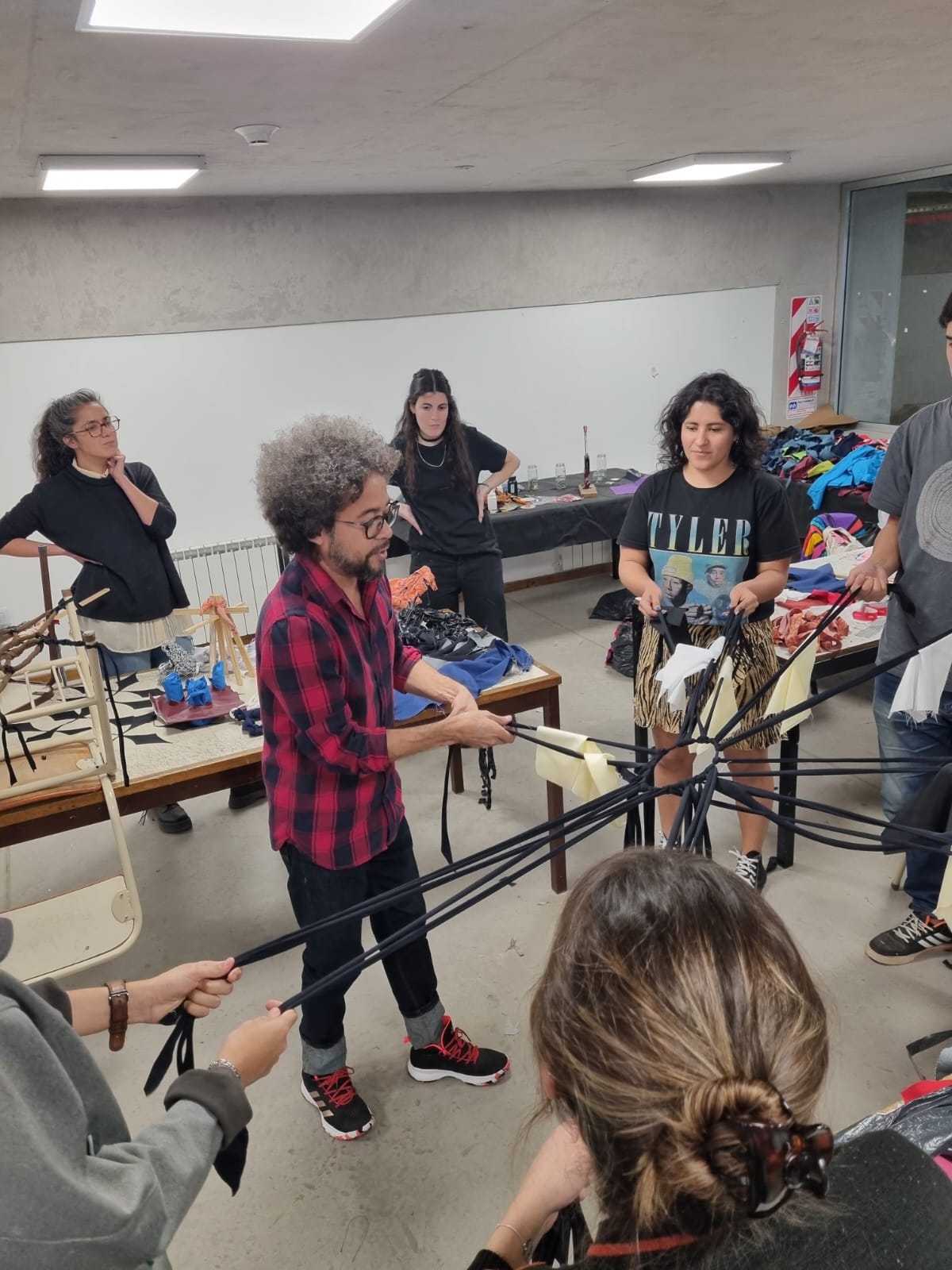 Se propuso la exploración con textiles, un recurso representativo y distintivo de otras ramas del diseño que puede ser reinterpretado desde nuestras orientaciones -arquitectura, diseño industrial, diseño del paisaje- para encontrar nuevas potencialidades junto a la orientación de docentes y referentes de nuestra FAUD.